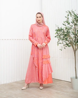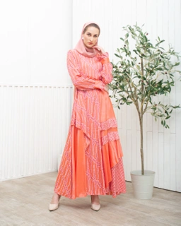 Dengan kombinasi yang apik antara batik dan lapisan ini, dress ini cocok untuk berbagai kesempatan formal dan memberikan kesan anggun dan berkelas.
